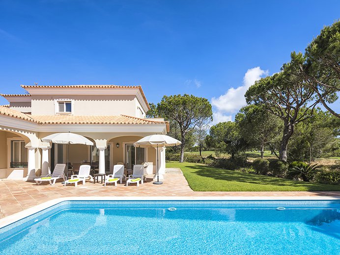 This house is a comfortably decorated four bedroom villa situated in Parque Atlântico one of the most sought after areas of Quinta do Lago. The entrance hall gives access to a guest cloakroom, to the kitchen, to the living and dining room and to the ground floor and first floor accommodation. The kitchen is spacious, fully equipped with ceramic hob, electric oven, microwave, dishwasher, combined fridge/freezer, toaster, kettle, espresso coffee machine and a dining area with a table. The laundry room is next to the kitchen and has washing machine and tumble dryer. The open plan living and dining room is spacious and comfortable. The living area has a fireplace and also a flat screen TV with a multichannel cable TV system, a DVD player and a sound system with CD, Radio and Ipod player. Sliding doors from the kitchen, dining room and living room lead to the swimming pool terrace. Three of the bedrooms are on the ground floor. One is a double bedroom and two are twin bedrooms all en-suite and with patio doors to the side garden of the villa. On the first floor is the spacious master en-suite double bedroom, with a dressing area and a private terrace. Surrounded by well maintained lawns and bushes the villa overlooks the golf course. The swimming pool measures approximately 10m x 6m and can be heated upon request. Also on the swimming pool terrace is a BBQ and a dinning and lounging area. The villa is equipped with air conditioning system and Wi-Fi access. The cleaning service is three times per week, except on public holidays. Other features: Pool towels Hair dryer Safe